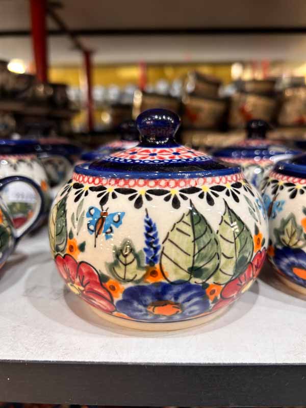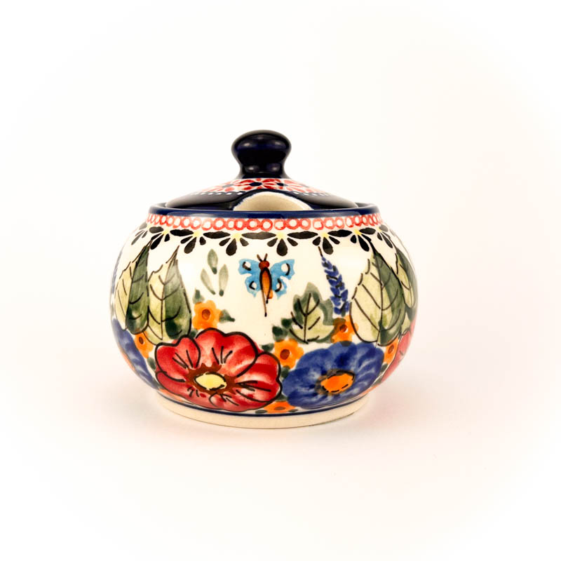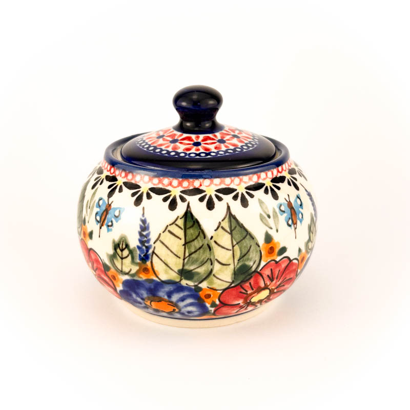Cukiernica ART 149 Bolesławiec. Oryginalna ceramika Bolesławiec – wzór motyle 149 Bolesławiec. Cukiernica z pokrywą. Pojemność około 250 ml. Malowana ręcznie, prawdziwy unikat. Produkt w 100% polski. Tradycyjne wykonanie – malowana ręcznie. Producent Zakłady Ceramiczne Bolesławiec.