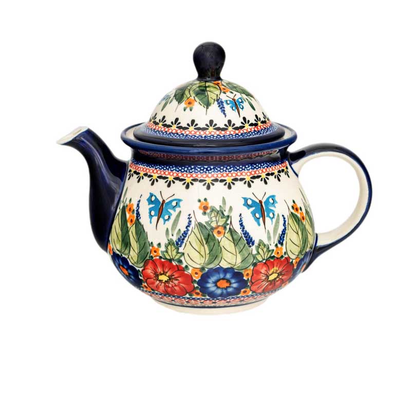 Czajnik duży ART 149 Bolesławiec. Oryginalna ceramika Bolesławiec – wzór motyle 149 Bolesławiec. Pojemność około 1,7 L. Malowany ręcznie, prawdziwy unikat. Produkt w 100% polski. Tradycyjne wykonanie – malowana ręcznie. Producent Zakłady Ceramiczne Bolesławiec.