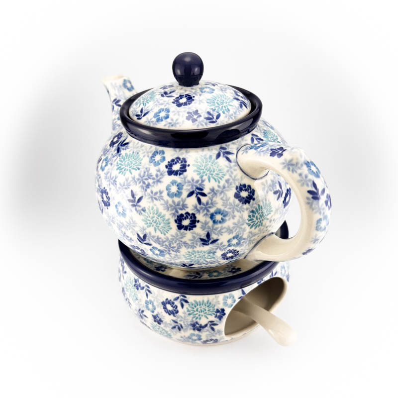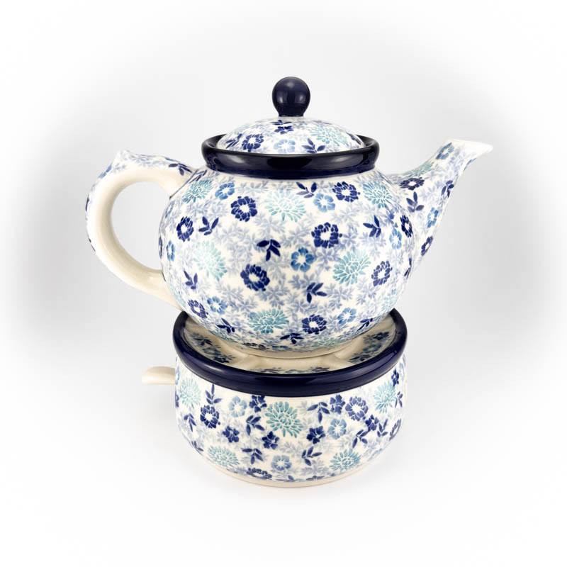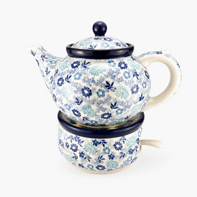 Czajnik o pojemności 1,2 L wykonany z ceramiki Bolesławieckiej. Malowany ręcznie metodą stempelkową we wzór kobaltowych kwiatów 2813X. Produkt polski.