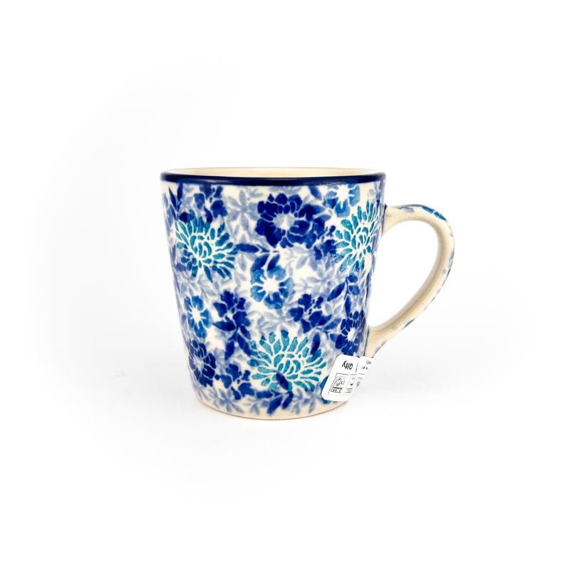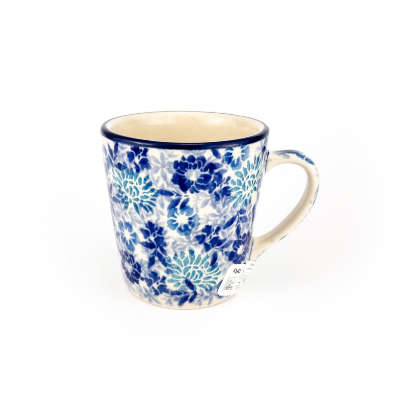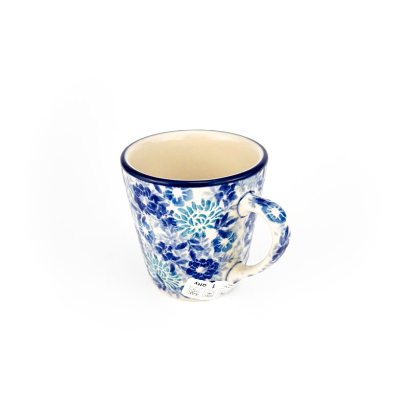 Kubek wykonany z ceramiki Bolesławiec. Pojemność 90 ml. Oryginaly wyrób tradycyjnie malowany ręcznie. Wzór 2813X, model to filiżanka F64. Produkt polski. Producent Ceramika Artystyczna Bolesławiec.