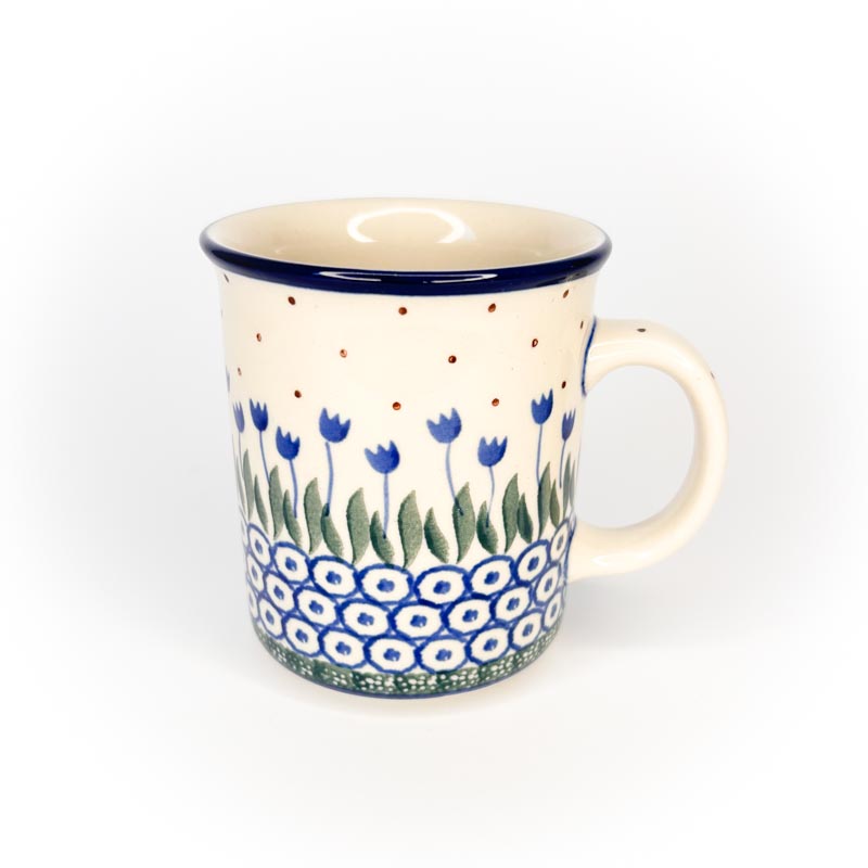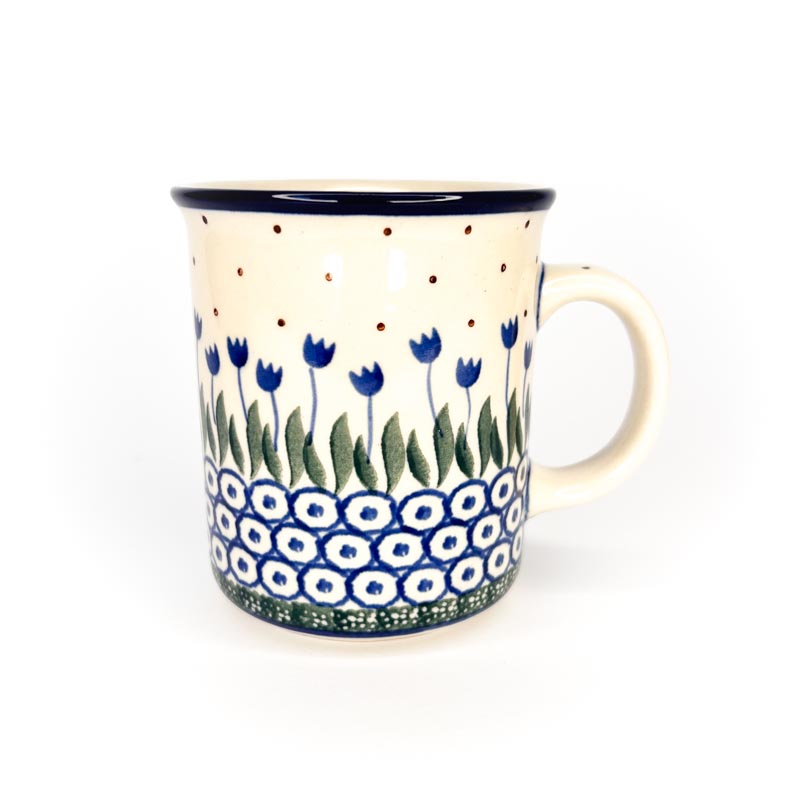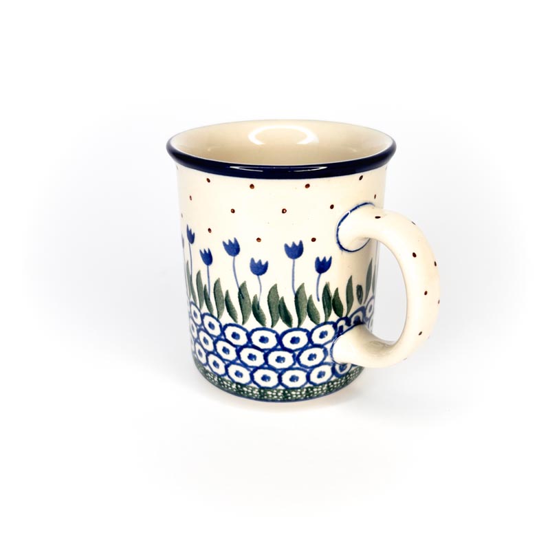 Elegancki kubek wykonany z ceramiki Bolesławiec. Pojemność 300 ml zachwyca ręcznie malowanym wzorem barwnych tulipanów, który doskonale wpisuje się w charakterystyczny dla Bolesławca styl dekoracji. Delikatne, kwitnące tulipany nadają zestawowi świeżości i uroku, sprawiając, że każda chwila przy kawie lub herbacie staje się jeszcze bardziej wyjątkowa.