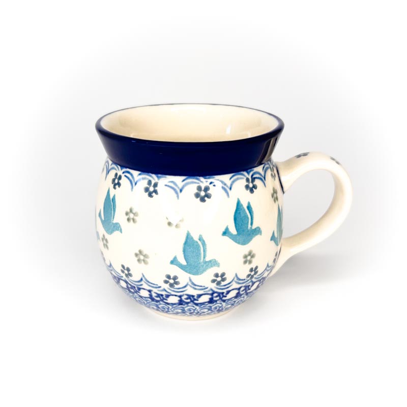 Tradycyjny kubek czeski wykonany z ceramiki Bolesławiec. Pojemność 200 ml malowany ręcznie we wzór gołębi