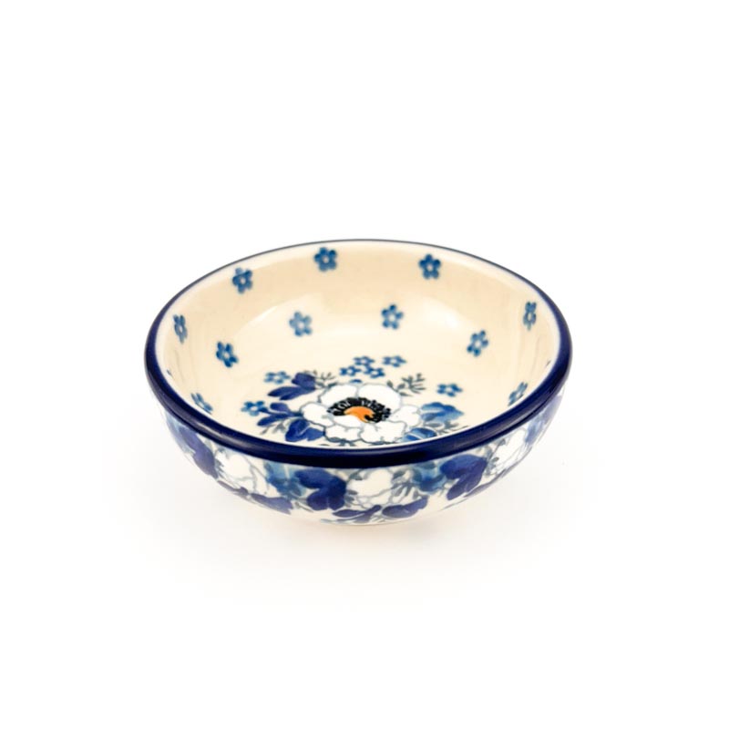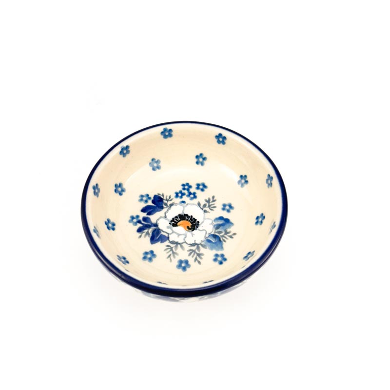 Praktyczna mała miseczka. Średnica 9 cm, wysokość 3 cm. Numer wzoru to 2222X anemony Ceramika Artystyczna Bolesławiec. Oryginalna polska ceramika Bolesławiec. Produkt w 100% polski.