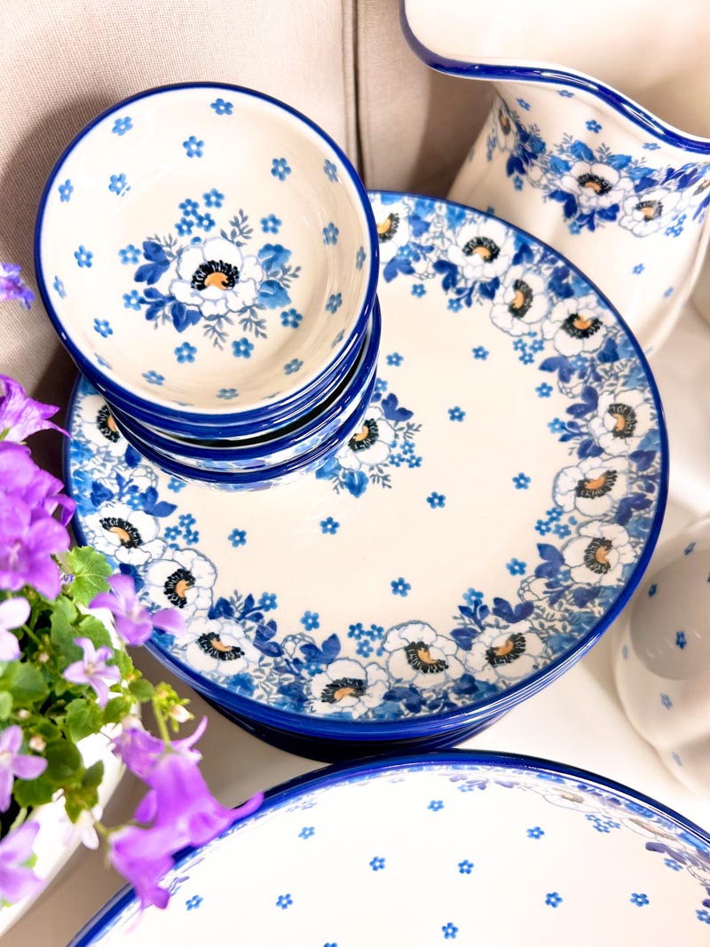 Praktyczna miseczka z ceramiki bolesławieckiej w dekoracji Anemony 2222X. Doskonała do serwowania przystawek, dipów, oliwek, oliwy lub malutkich deserów. Trwała, ręcznie zdobiona, łączy funkcjonalność z tradycyjnym polskim wzornictwem.