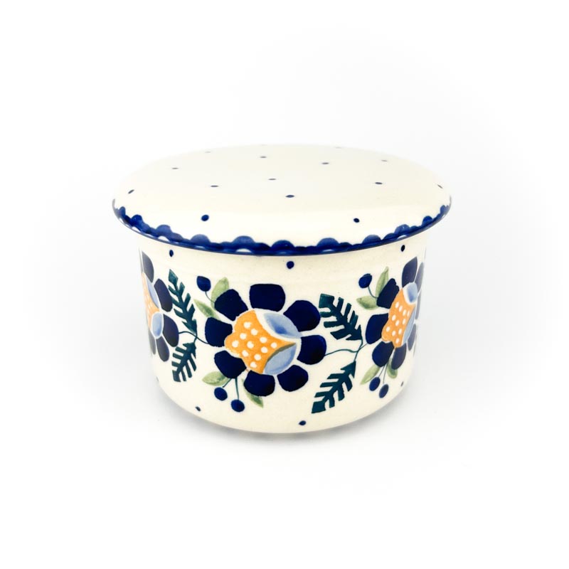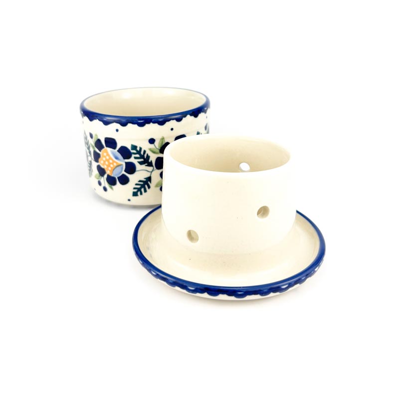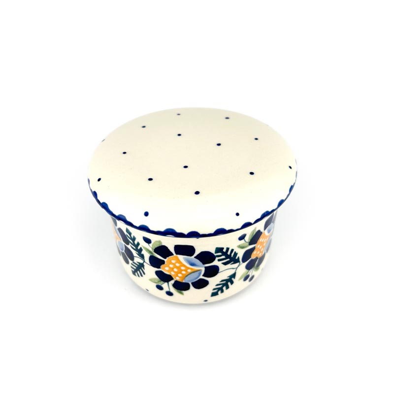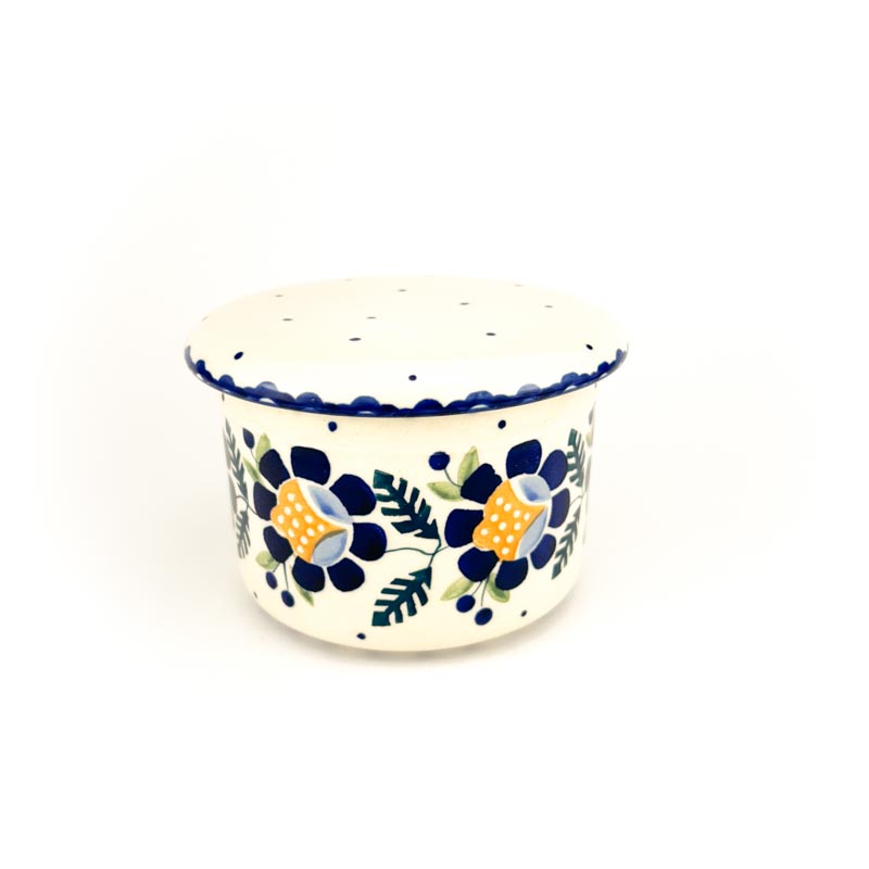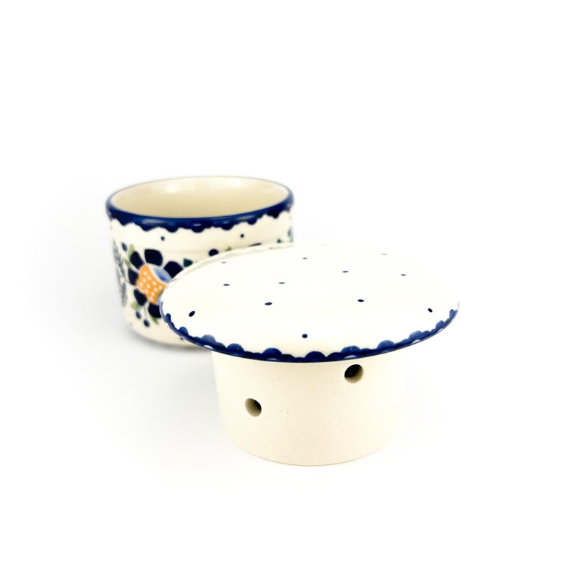 Sposób użycia: do pokrywki włożyć masło, dno pojemnika zalać przegotowaną zimną wodą. Nie wymaga trzymania w lodówce. Maselnica malowana ręcznie w Manufakturze Bolesławiec. Oryginalna ceramika z Bolesławca. Produkt wykonany z naturalnych materiałów. Produkt polski. Producent Manufaktura Bolesławiec. Gatunek 2.