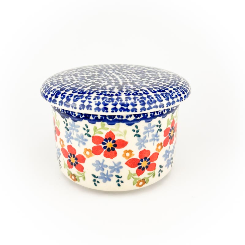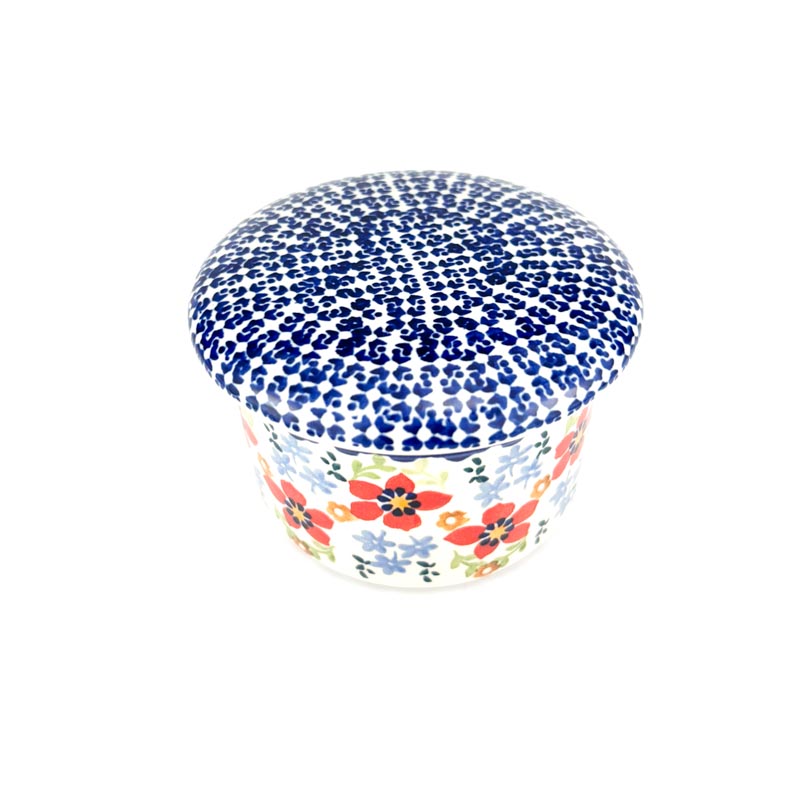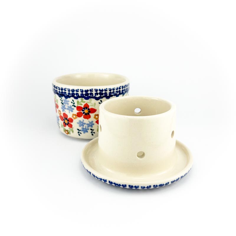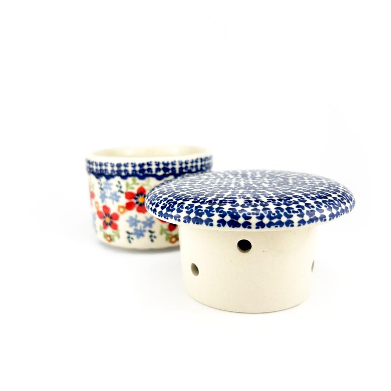 Sposób użycia: do pokrywki włożyć masło, dno pojemnika zalać przegotowaną zimną wodą. Nie wymaga trzymania w lodówce. Maselnica malowana ręcznie w Manufakturze Bolesławiec. Oryginalna ceramika z Bolesławca. Produkt wykonany z naturalnych materiałów. Produkt polski. Producent Manufaktura Bolesławiec. Gatunek 2.