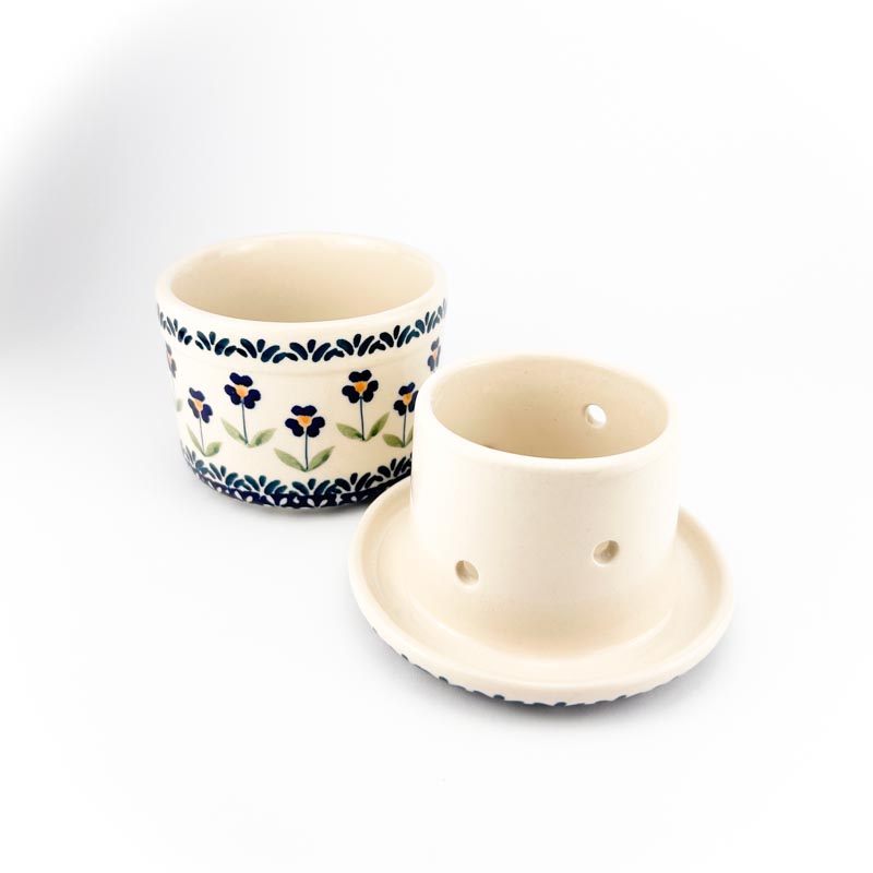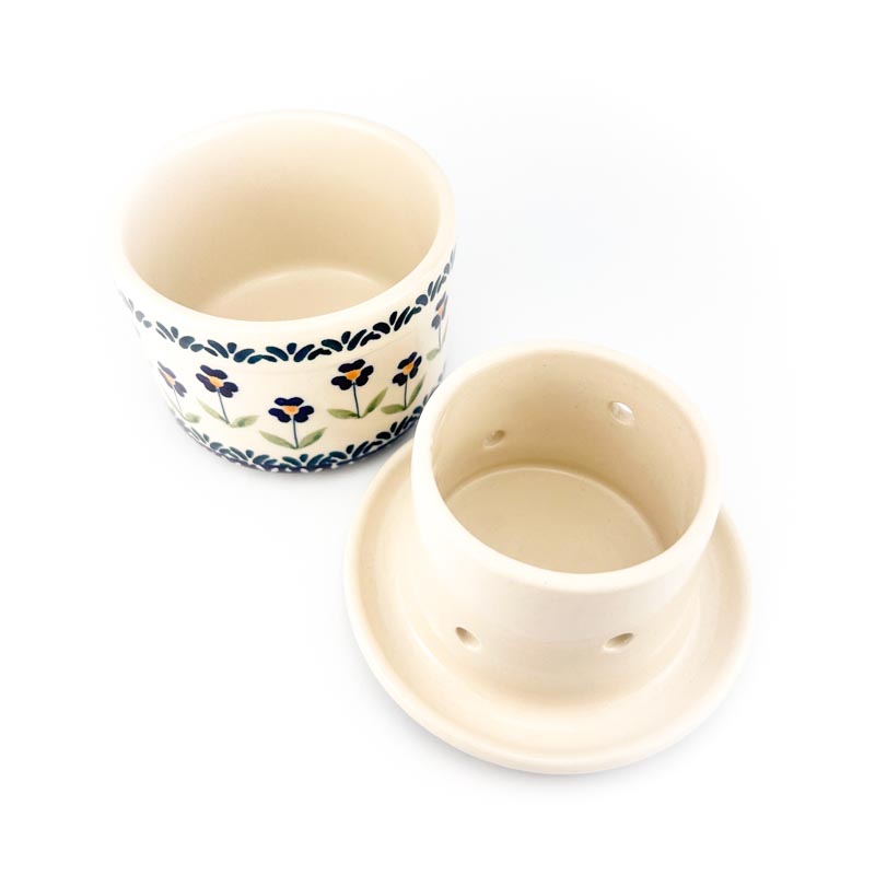 Sposób użycia: do pokrywki włożyć masło, dno pojemnika zalać przegotowaną zimną wodą. Nie wymaga trzymania w lodówce. Maselnica malowana ręcznie w Manufakturze Bolesławiec. Oryginalna ceramika z Bolesławca. Produkt wykonany z naturalnych materiałów. Produkt polski. Producent Manufaktura Bolesławiec.
