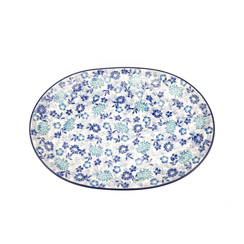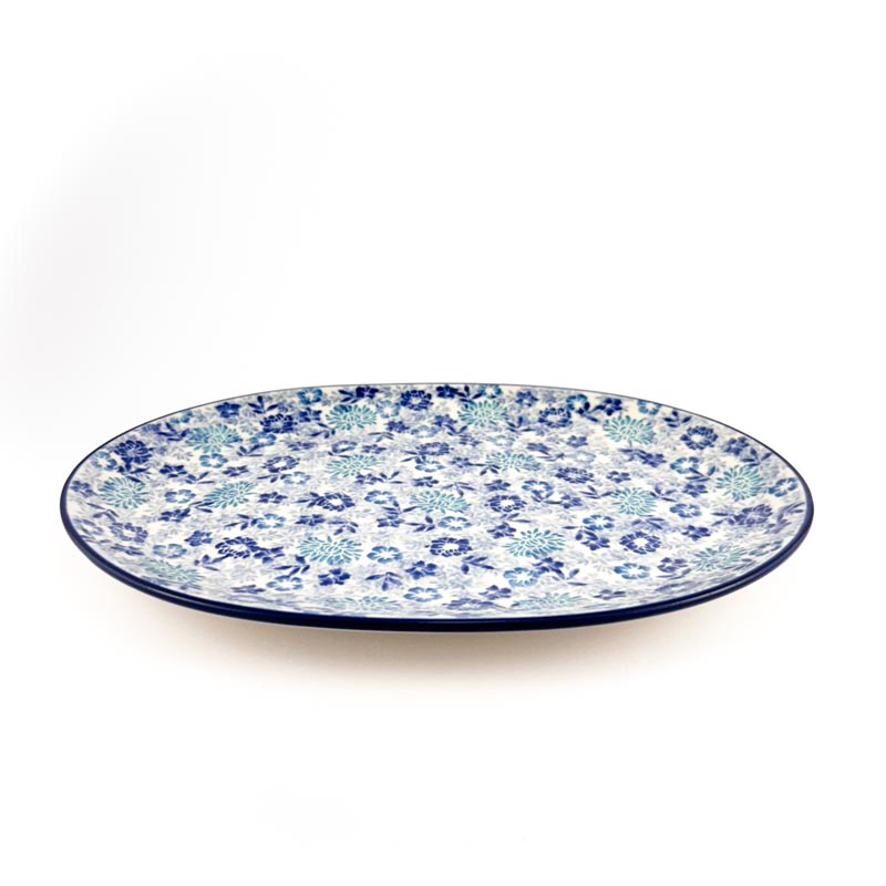 Półmisek do wędlin Bolesławiec. Oryginalny półmisek tradycyjna ceramika Bolesławiec. Elegancki wzór w niebieskie kwiatki. Wzór 2813X. Produkt polski. Producent Ceramika Artystyczna Bolesławiec. Długość 26,7 cm, szerokość 18,7 cm.