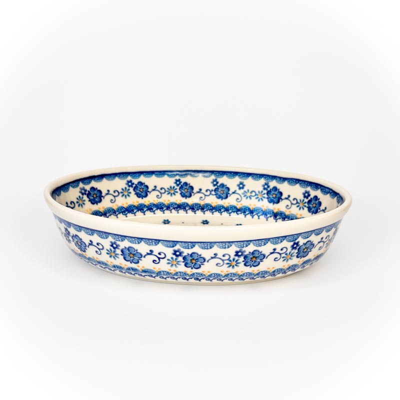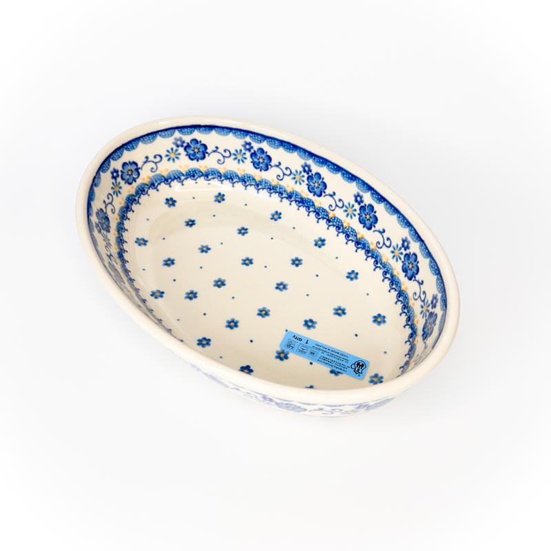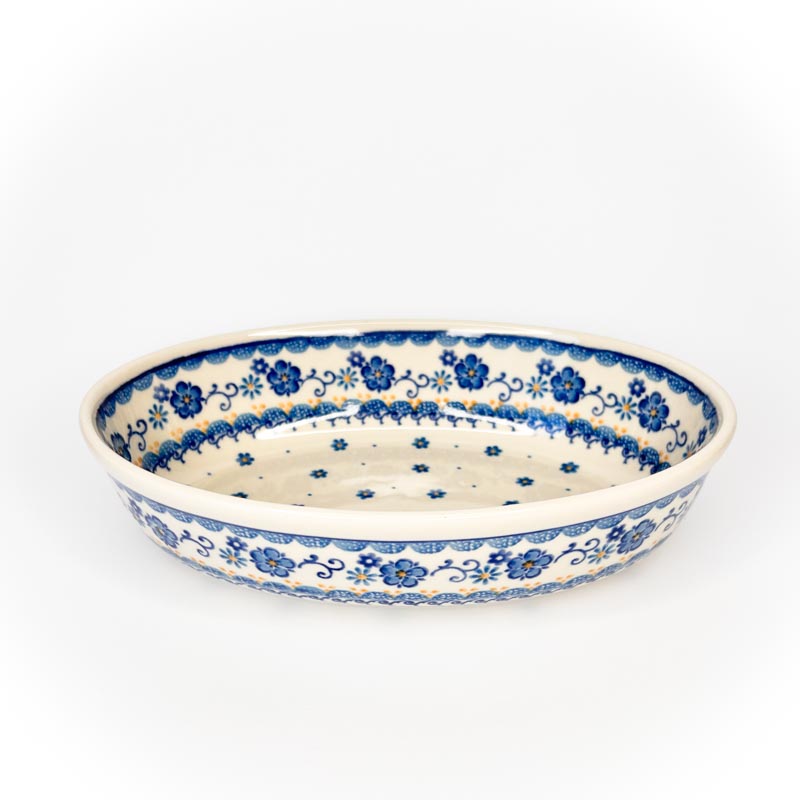 Półmisek wykonany z oryginalnej polskiej ceramiki Bolesławiec. Długość 24 cm, szerokość 16 cm, głębokość 6 cm. Nadaje się do serwowania potraw oraz do pieczenia. Produkt w 100% polski. Producent Ceramika Artystyczna Bolesławiec.