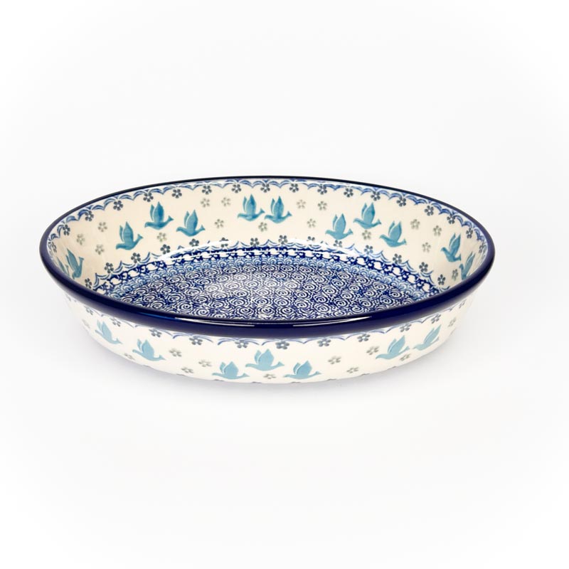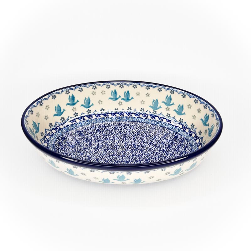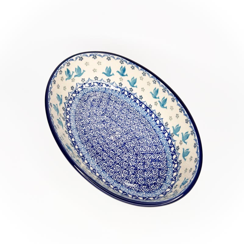 Półmisek wykonany z oryginalnej polskiej ceramiki Bolesławiec. Długość 24 cm, szerokość 16 cm, głębokość 6 cm. Nadaje się do serwowania potraw oraz do pieczenia. Produkt w 100% polski. Producent Ceramika Artystyczna Bolesławiec.