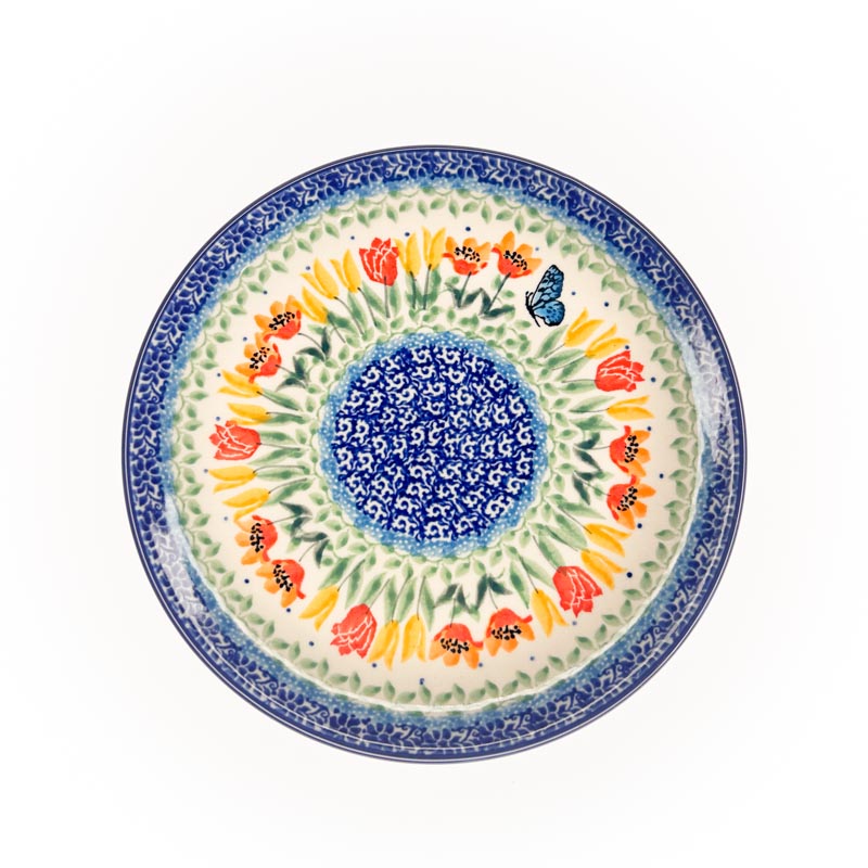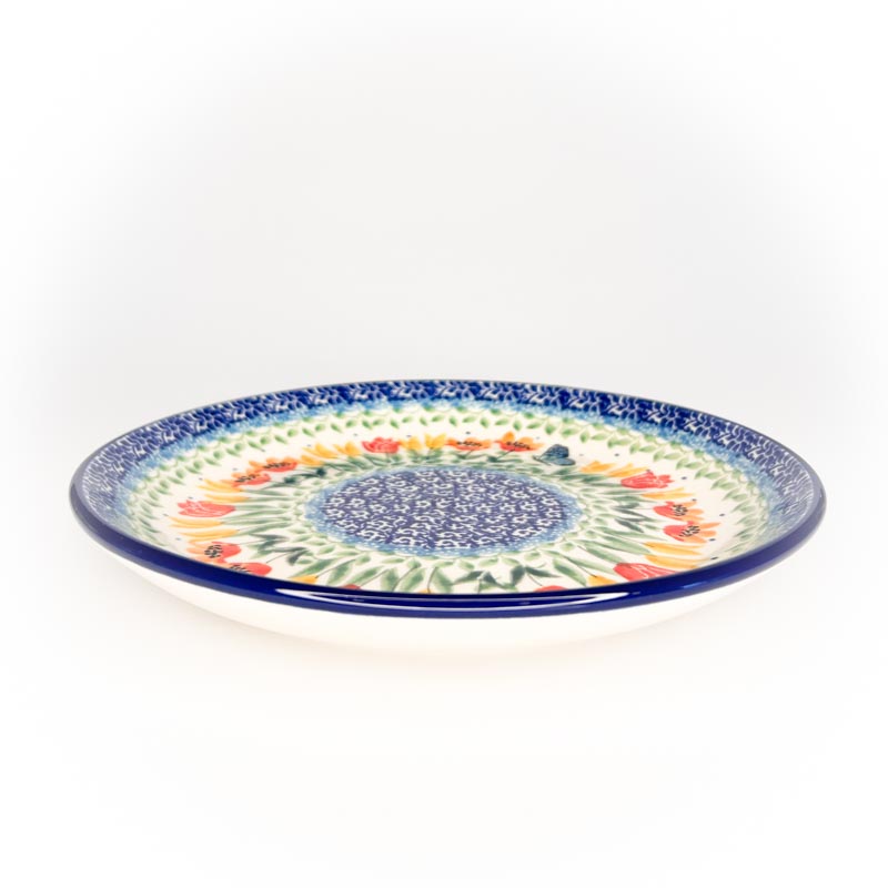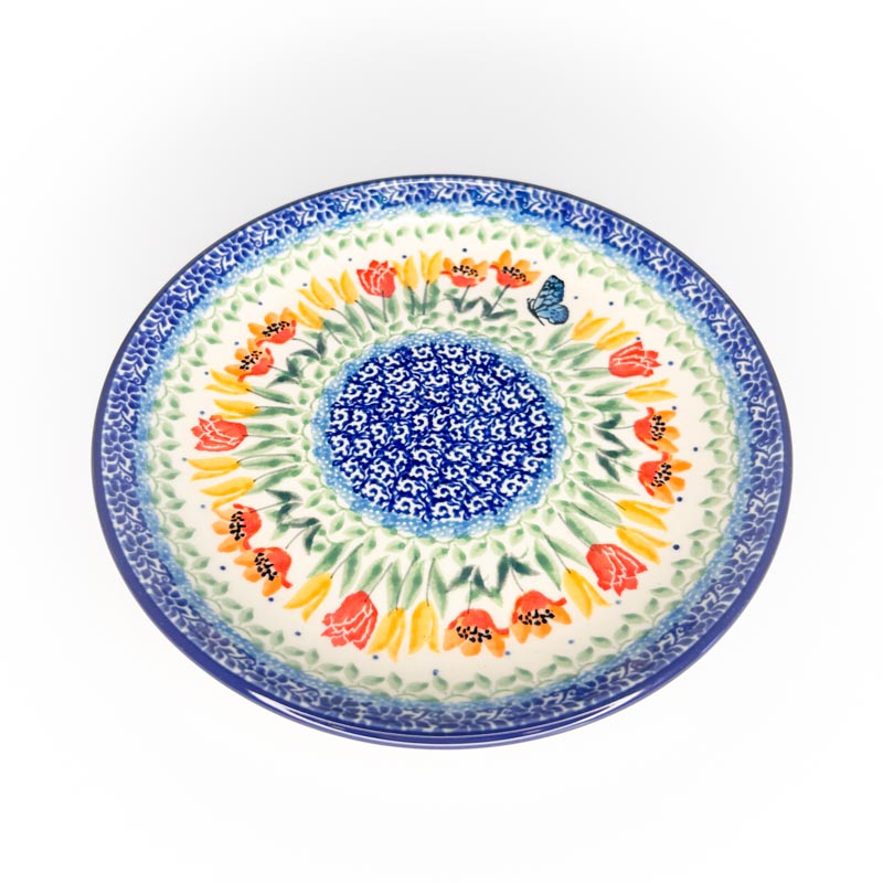 Talerz śniadaniowy Wzór maki i tulipany. Ma średnicę 20 cm. Wzór nanoszony jest stemplami ręcznie przez artystów z Ceramiki Bolesławiec.